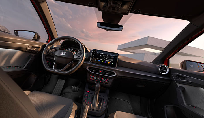 I SEAT Ibiza har du al den information, du har brug for, når du kører med 8,25" infotainmentskærm og fuldt digital cockpit*. Som standard får du også SEAT Full Link-teknologi med Apple CarPlay og Android Auto, der ubesværet forbinder dig og din Ibiza.